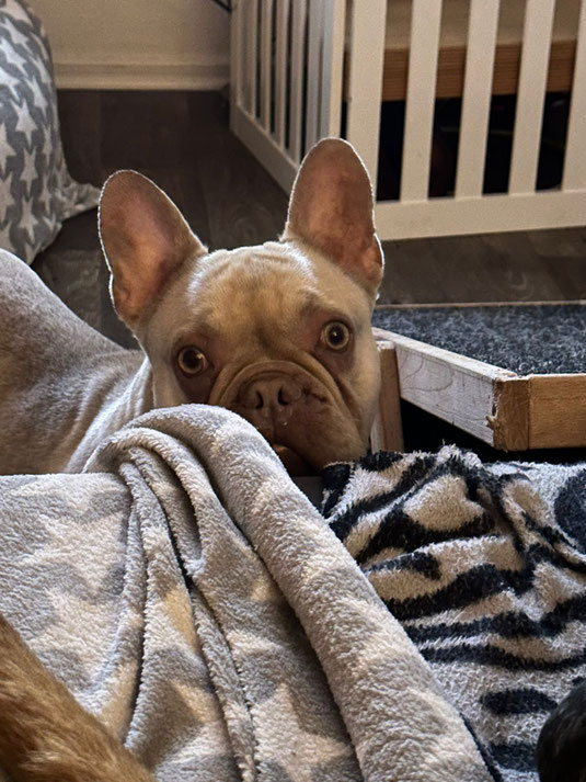 Auch ansonsten bin ich super unkompliziert sagt meine Pflegemama 😇. Und ich sei ein typischer Frenchie: Ein Clown und begeistert von allem und jedem 🤗.